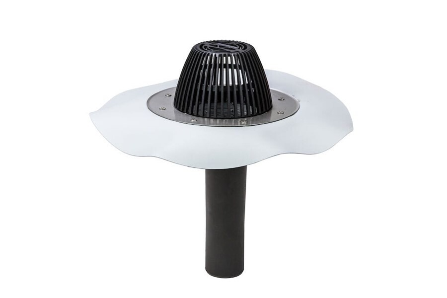 Монтаж: АМ водосточная воронка монтируется на дополнительный кусок кровельного материала размером 1м х 1м. Фланец крепится наплавлением. Рекомендуется дополнительно закрепить воронку к основанию кровли шурупами или креплениями для теплоизоляции через отверстия в нижнем фланце из полипропилена, расположенного под фланцем из кровельного материала.