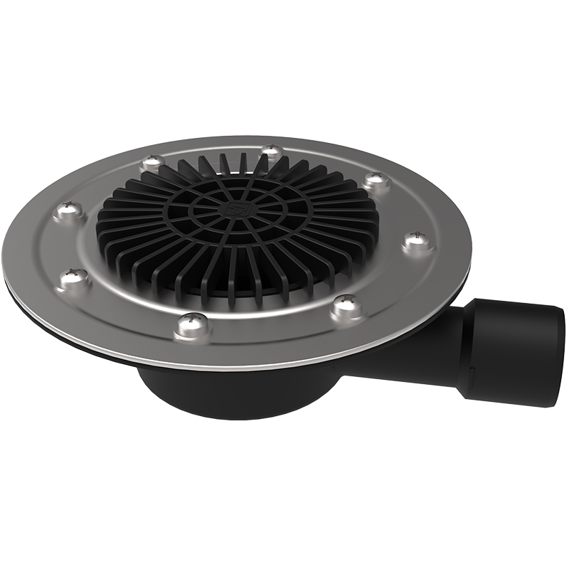 Воронка для балконов и террас c горизонтальным выпуском 50/40 ТП-80.4 с листвоуловителем и прижимным фланцем из нержавеющей стали предназначена для отвода дождевой и талой воды c балконов и террас в дождевую канализацию. Листвоуловитель предотвращает попадание веток, листьев и прочего мусора в ливневую систему канализации.