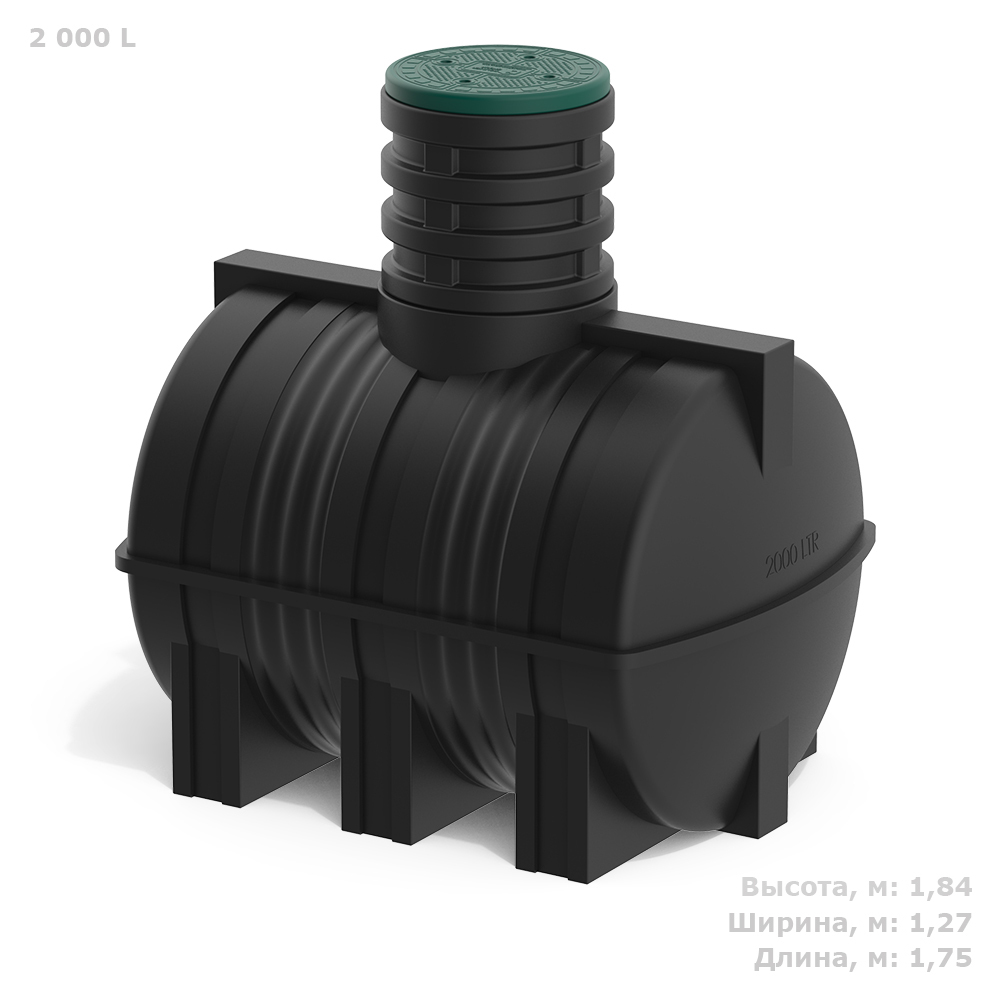 Накопительная емкость D 2000 литров предназначена для сбора, хранения и дальнейшего использования или утилизации технической, питьевой воды, дизельного топлива, хозяйственно-бытовых, дождевых и талых стоков.