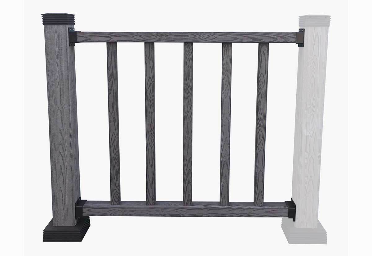 Стандартная секция (по высоте столбов - 1 метр, и по длине перил - 1 метр). Ограждение поставляется в коробке.