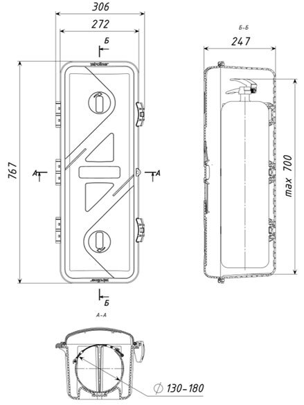 - Размеры вмещаемых огнетушителейот ОП4 до ОП10;