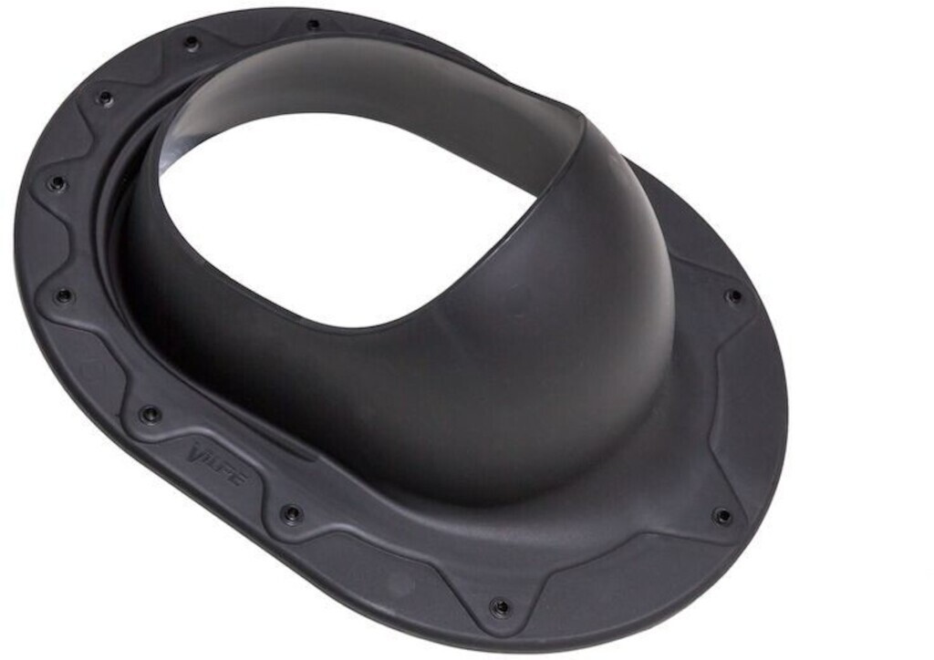 Проходной элемент вентиляции Classic Vilpe для монтажа на фальцевой и готовой битумной скатной кровле вентиляционных выходов и вентиляторов диаметром 110-160 мм и антенного ворота. Герметичность монтажа обеспечивается резиновым уплотнителем на внутренней стороне фланца.