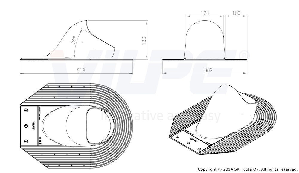 Предлагаем купить проходной элемент для битумной кровли HUOPA/SLATE Huopa/Slate проходной элемент для скатной битумной и сланцевой кровли. Устанавливается при монтаже кровельного материала. HUOPA/SLATE проходной элемент для монтажа на скатной битумной и сланцевой кровле труб и вентиляторов диаметром 110 –160 мм, а также антенного ворота. Huopa/Slate 741062 черный Размеры: ширина 389 мм, длина 518 мм, ширина фланца 100 мм. Комплект: проходной элемент, шаблон и набор крепежа (саморезы 6x25 мм в цвет ). Монтаж: устанавливается при монтаже кровельного материала. Материал: Полипропилен Применяемость - проходной элемент для вентиляции Вес 0,73 кг Максимальный угол уклона кровли для труб разного диаметра: труба Ø 110 мм - 53°(уклон 59°, если труба продлевается напрямую в подкровельное пространство. Надо подрезать ворот трубы; уклон 77°, если труба не продлевается напрямую в подкровельное пространство. Надо подрезать ворот трубы и ворот проходного элемента) труба Ø 125 мм - 54°( уклон 57°, если подрезать ворот трубы) труба Ø 160 мм - 49°(уклон 52°, если подрезать ворот проходного элемента) Минимальный угол уклона кровли для труб разного диаметра: труба Ø 110 мм - 36° (уклон 11°, если развернуть трубу на 18° градусов и подрезать ворот проходного элемента) труба Ø 125 мм - 36° (уклон 11°, если развернуть трубу на 18° градусов и подрезать ворот проходного элемента) труба Ø 160 мм - 36° (уклон 11°, если развернуть трубу на 18° градусов и подрезать ворот проходного элемента) Для заказа товара Huopa/Slate 741062 Проходной элемент черный, позвоните нам по телефону или оставьте свой заказ на сайте