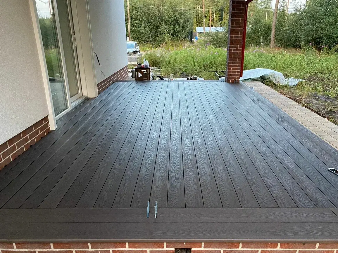 Террасная доска применяется для всех типов террасных настилов уличного покрытия. Профиль имеет двухстороннюю обработку и даёт Вам возможность выбрать любую из поверхностей, профиль “3D+ВЕЛЬВЕТ” имеет одну сторону глубокой фактуры дерева в 3D исполнении, с дополнительной обработкой полирования поверхности и вторую сторону классической мелкой полоски, тоже с дополнительным полированием и 3D эффектом. 3D эффект придаёт доске не только визуально красивый вид, но и даёт дополнительную защиту от ультрафиолета, повышенной влажности, а так же высокую степень показателей истираемости и не оставляет на себе пятен, как это бывает с обычным шлифованным профилем из ДПК.