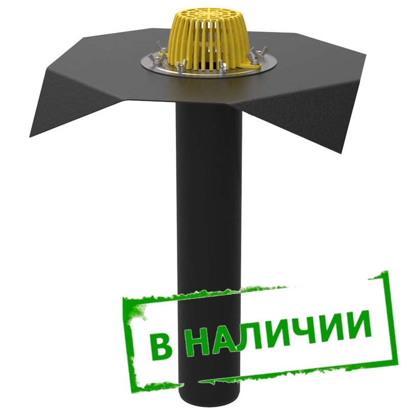 Кровельная воронка с битумным фартуком ТП-01.100/6/В-Э, с листвоуловителем и прижимным фланцем из нержавеющей стали предназначена для отвода дождевой и талой воды с плоских кровель в дождевую канализацию. Листвоуловитель позволяет предотвратить попадание веток, листьев и прочего мусора в дождевую канализацию.