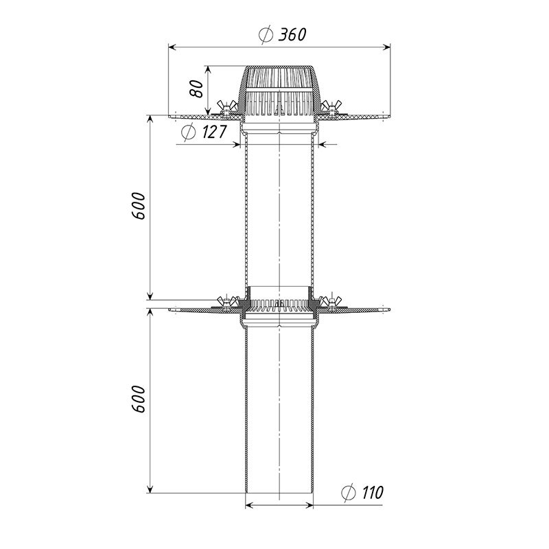 Купить двухуровневую кровельную воронку ТП-09.100. Высота патрубка 600 мм