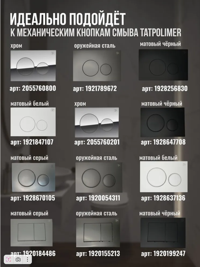 - Подходит для большинства подвесных унитазов благодаря стандартному межосевому расстоянию 18-23 см. Совместима с популярными брендами сантехники.