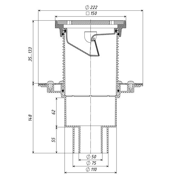 Трап чугунный вертикальный ду 100/75/50 с гидрозатвором предназначен для приема и отведения в канализационную сеть сточных вод с поверхности пола, устанавливаемые в жилых, общественных и производственных зданиях. Благодаря наличию гидрозатвора трап надежно защищает помещение от неприятных запахов из канализации.