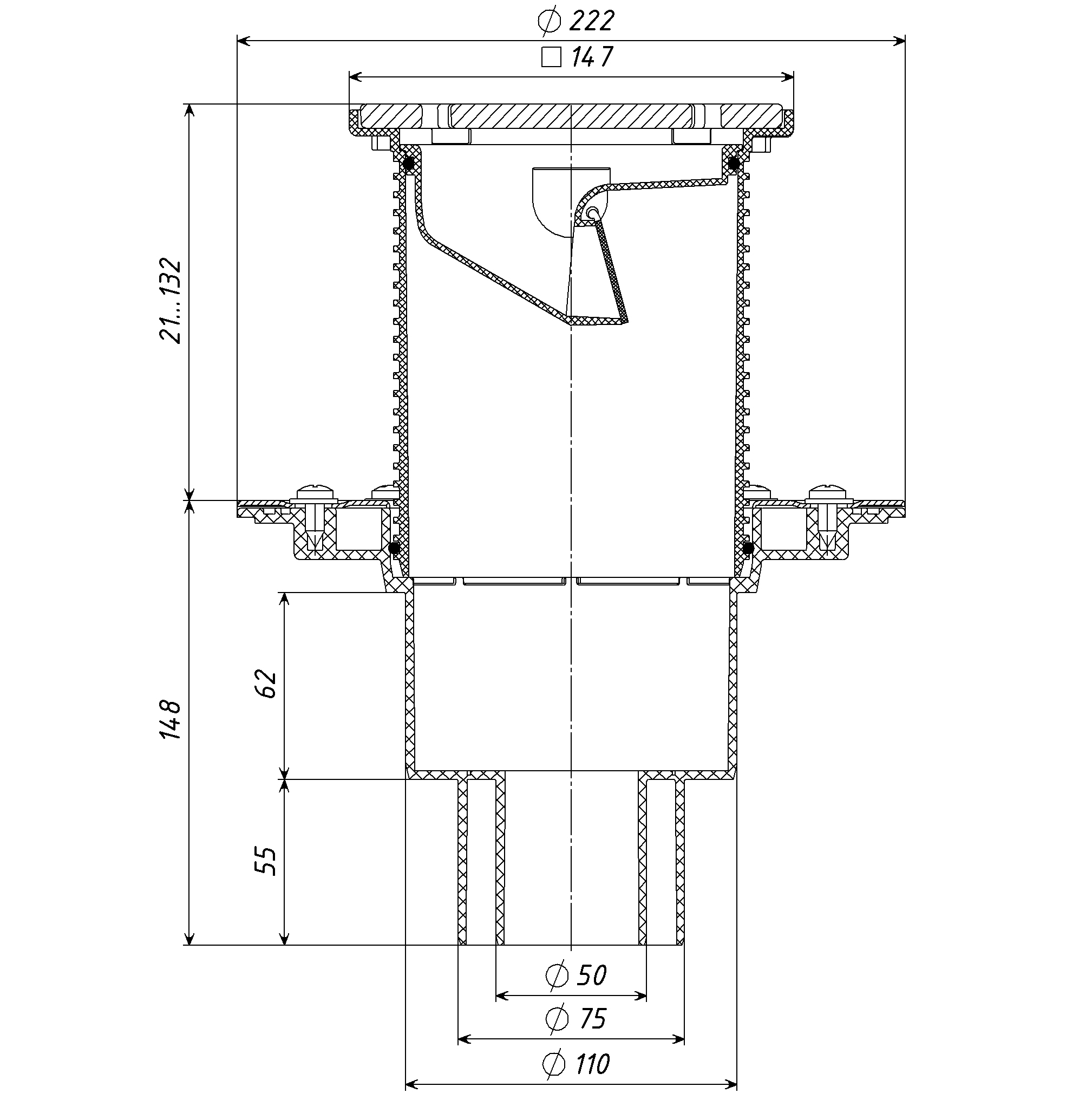 ТП-310.1PN Трап регулируемый вертикальный 110/75/50 верт. выпуск решетка чугунная