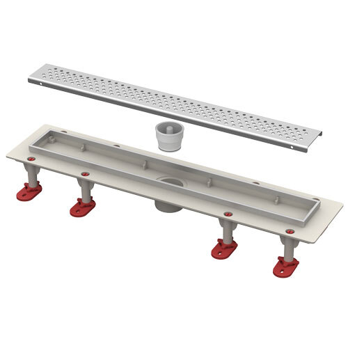 Лотковый трап предназначен для организации слива воды из душевых и ванных комнат. Щелевая планка душевого лотка изготовлена из нержавеющей стали AISI304, что увеличивает срок службы изделия и минимизирует риск повреждения даже при работе в отрицательных температурных условиях. Идущая в комплекте гидроизоляционная лента, минимизирует риск протечек. Трап имеет вертикальный отвод для подсоединения канализационной трубы диаметром 50 мм. Выбранный один из трех вариантов затвора легко снимается и чистится. Крепеж позволяет регулировать высоту при установке. При установке использовать водостойкий герметик.