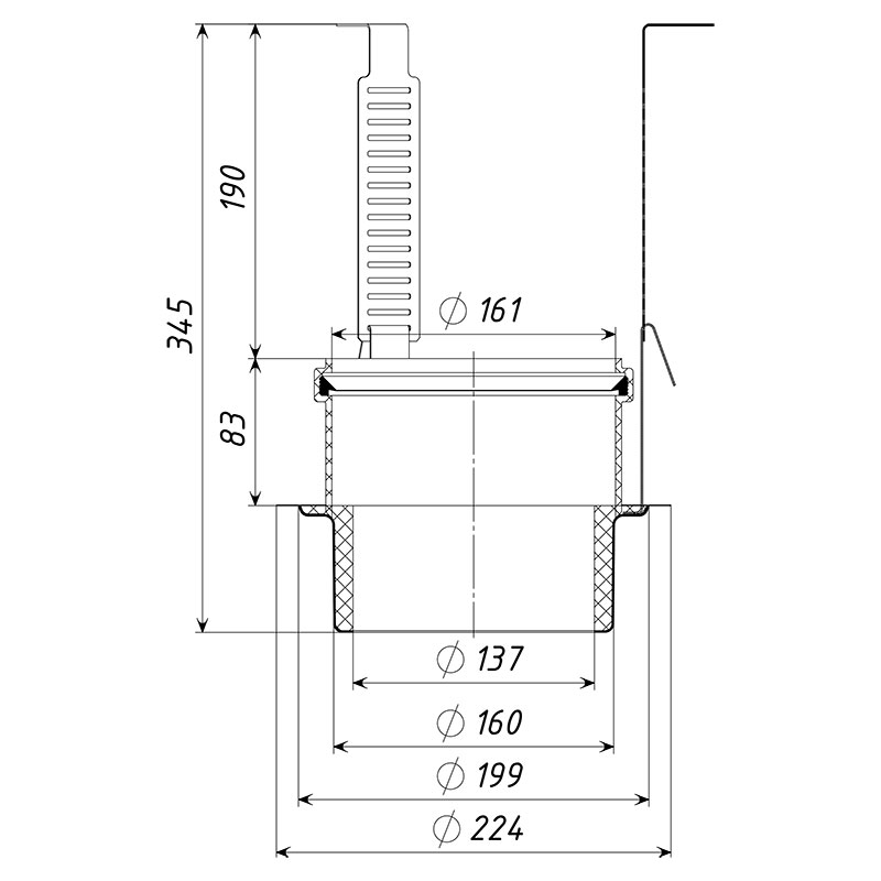 Также могут использоваться канализационные трубы DN 110 из стали и чугуна, если они соединены с выпуском трапа или кровельной воронки через переходник ТП-82.100.