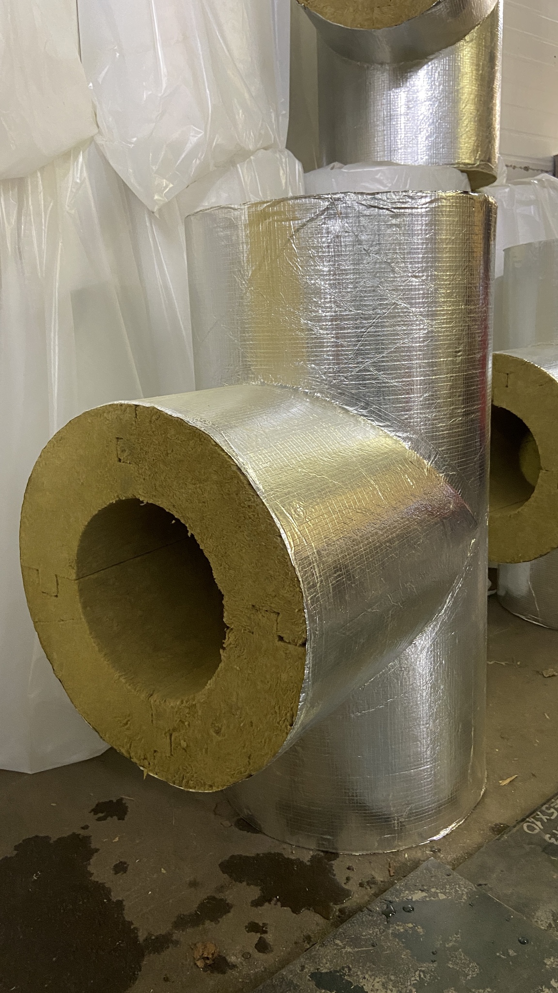 Минераловатные тройники - это эффективный и безопасный утеплитель для инженерных коммуникаций, изготовленный из экологически чистого и негорючего материала с оцинкованным покрытием.