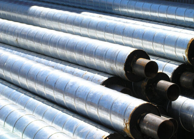 Стальные трубы в теплоизоляции из ППУ пенополиуретана с оцинкованным защитным внешним покрытием. Предназначены для наружной прокладки теплотрасс.Внешний слой защищает от коррозии, попадания влаги.