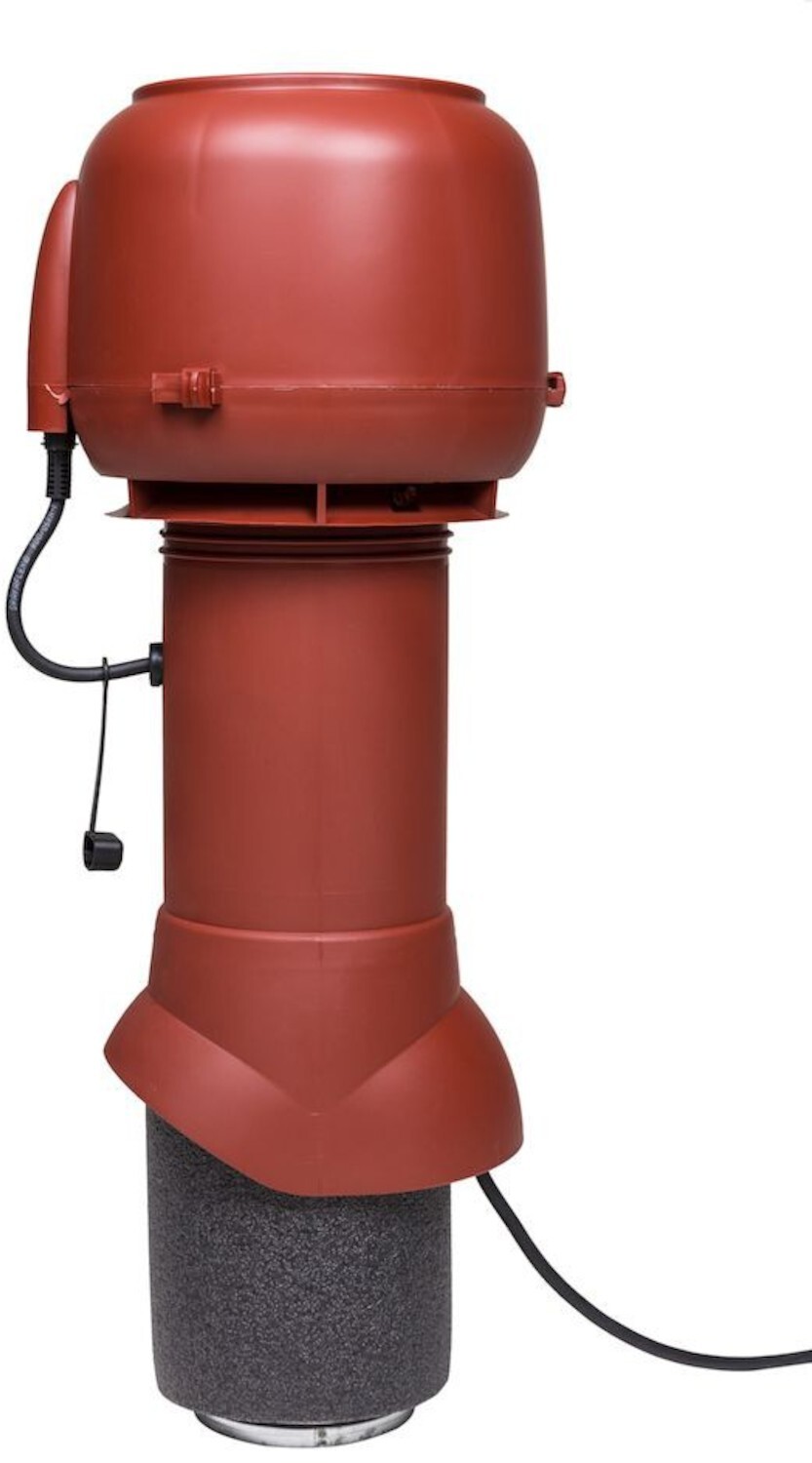 Труба с теплоизоляцией из вспененного полиэтилена для предотвращения образования конденсата в трубе. Внутренняя труба изготовлена из оцинкованной стали. Длина внутренней трубы позволяет вставить ее в подводимый воздуховод на длину 300 мм. Это облегчает вертикальный монтаж в тесных чердачных помещениях и одновременно делает конструкцию более прочной. Нижний край внутренней трубы имеет резиновый уплотнитель для герметичного соединения с воздуховодом, а cкорость вращения плавно регулируется дискретным переключателем или тиристором, который приобретается отдельно.