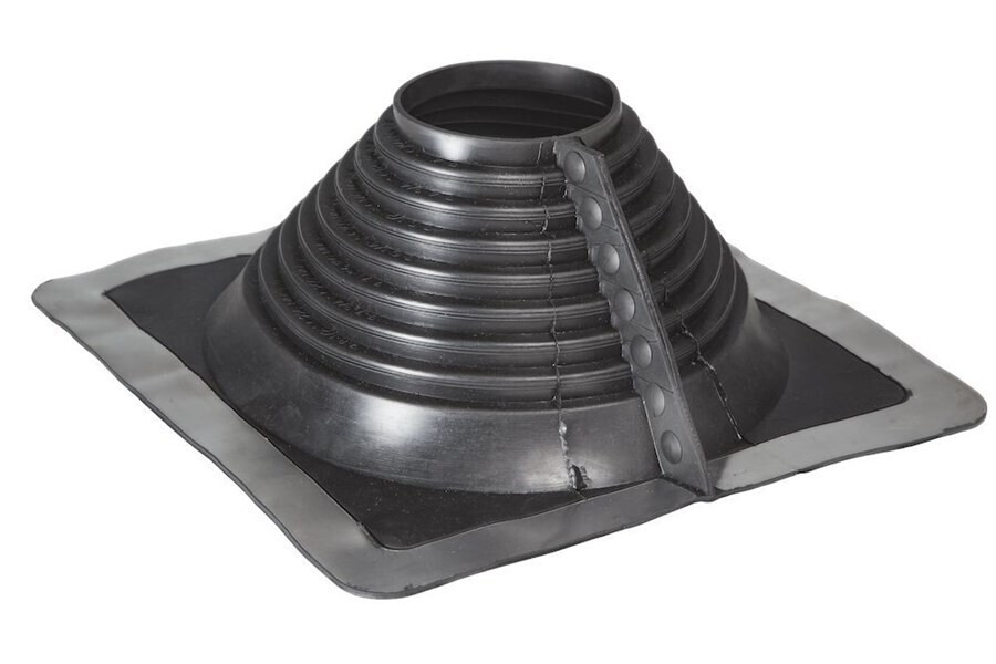 Retrofit резиновый уплотнитель для герметичной проводки труб, опор рекламных щитов, флагштоков, кабелей и т.д. через металлическую кровлю. Гибкий уплотнитель из EPDM -резины с фланцем, имеющим алюминиевое покрытие, допускает тепловые и механические колебания, герметизируя отверстие в кровле