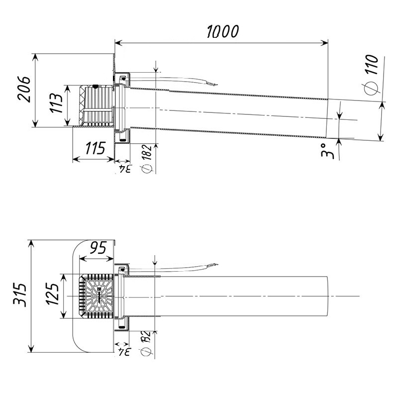 - длина отводящей трубы – 1000 ;