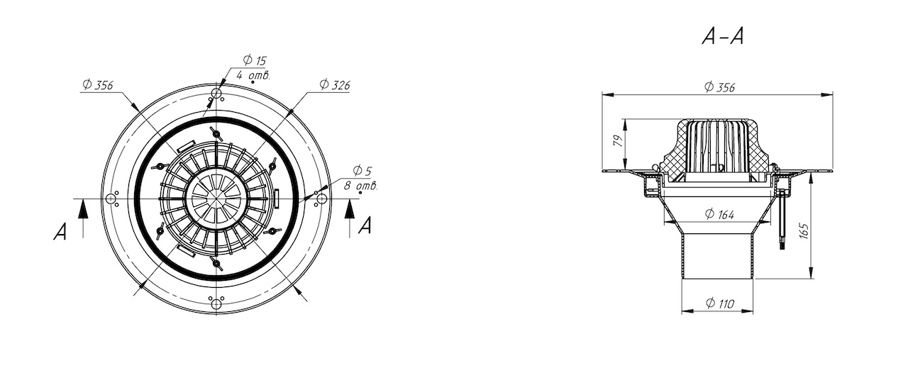 Механический способ соединения кровельного полотна с воронкой применим для всех типов гидроизоляционных материалов. Комплектуется шестигранными гайками и барашками для удоб-ства монтажа.